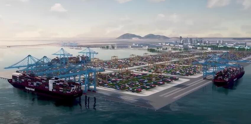 Image: A 3D modelling of the port to be built on the Great Nicobar island. Source: India Shipping Ministry/BBC