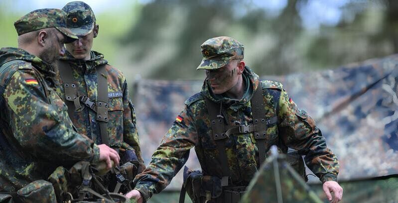 Image Credit: Klaus-Dietmar Gabbert/dpa-Zentralbild/dpa (Recruits from Germany’s Logistics Battalion 171 practice pitching tents at the Burg training area).