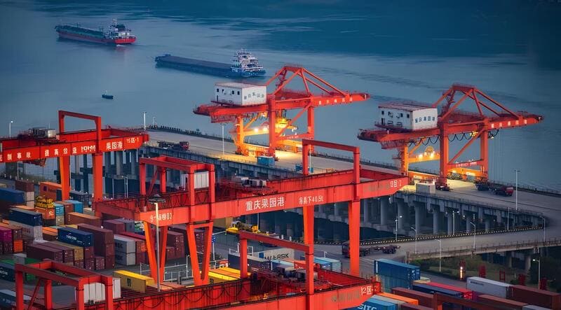 Crédit image : AFP (Des cargos transportant des conteneurs passent au port de Guoyuan à Chongqing, en Chine, le 11 janvier 2025).
